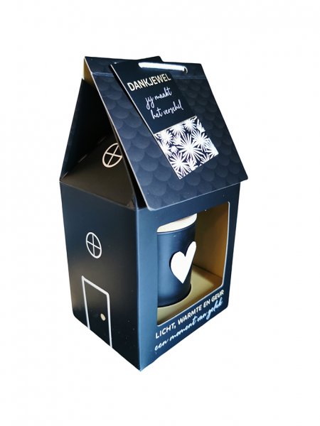 Geplaatst in een Cadeau verpakking in de vorm van een Huisje.