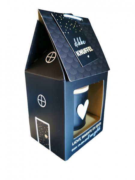 Geplaatst in een Cadeau verpakking in de vorm van een Huisje.